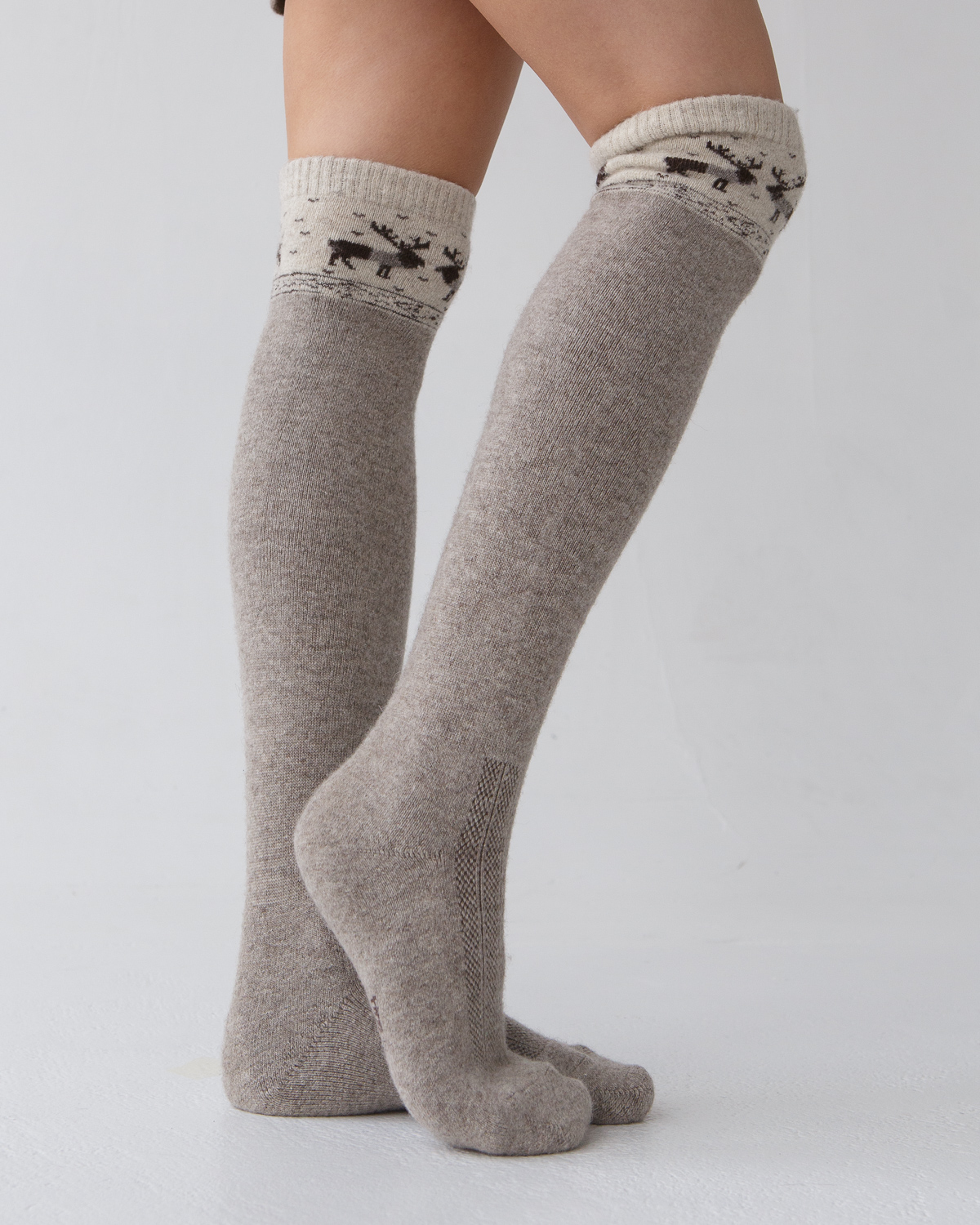 Теплые гольфы из 100% шерсти серые с рисунком