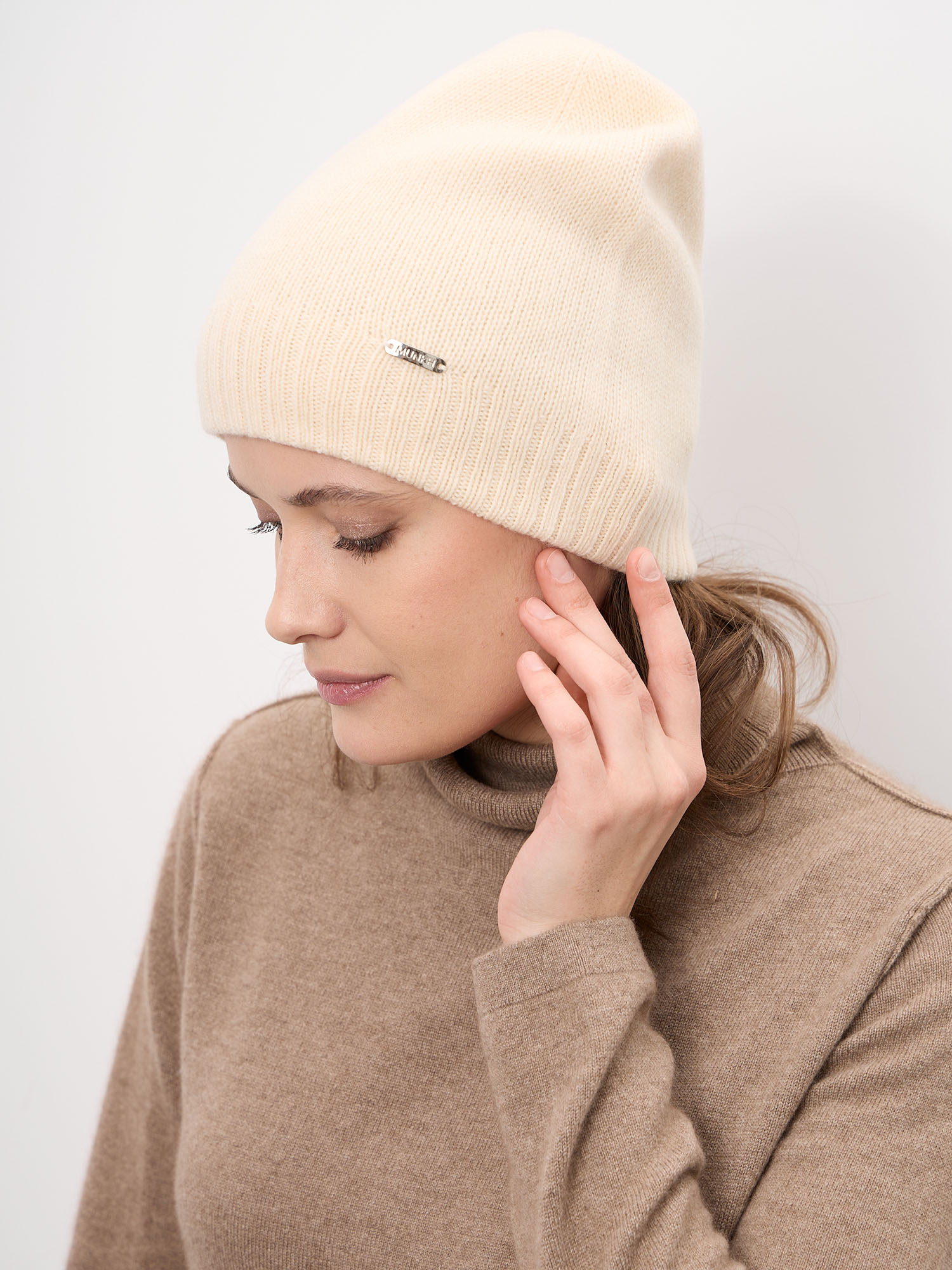 Шапка из кашемира 04286 кремовая