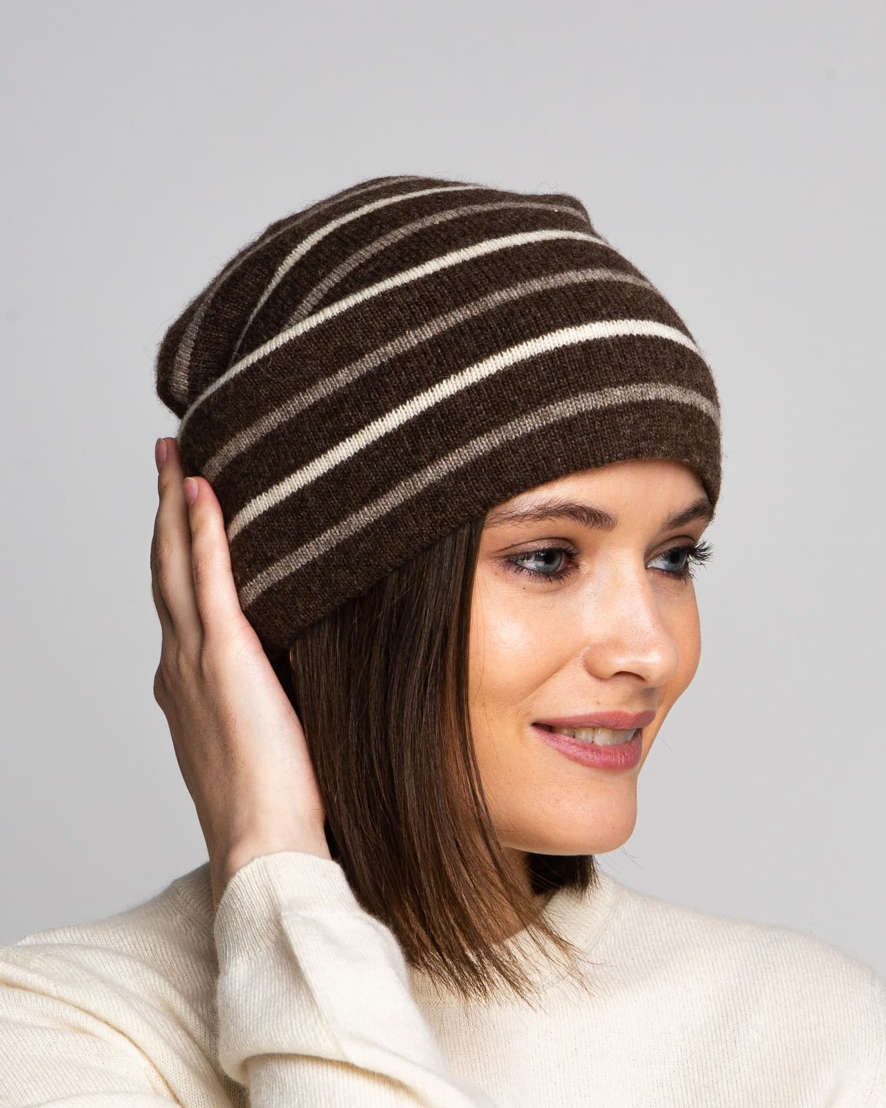 Лаконичный дизайн с полосками придает шапке динамичный и современный вид, а удобная посадка обеспечивает комфорт на протяжении всего дня. Эта шапка — отличный выбор для тех, кто ценит натуральные материалы и высокий уровень комфорта, а также ищет стильный и практичный аксессуар для зимы.