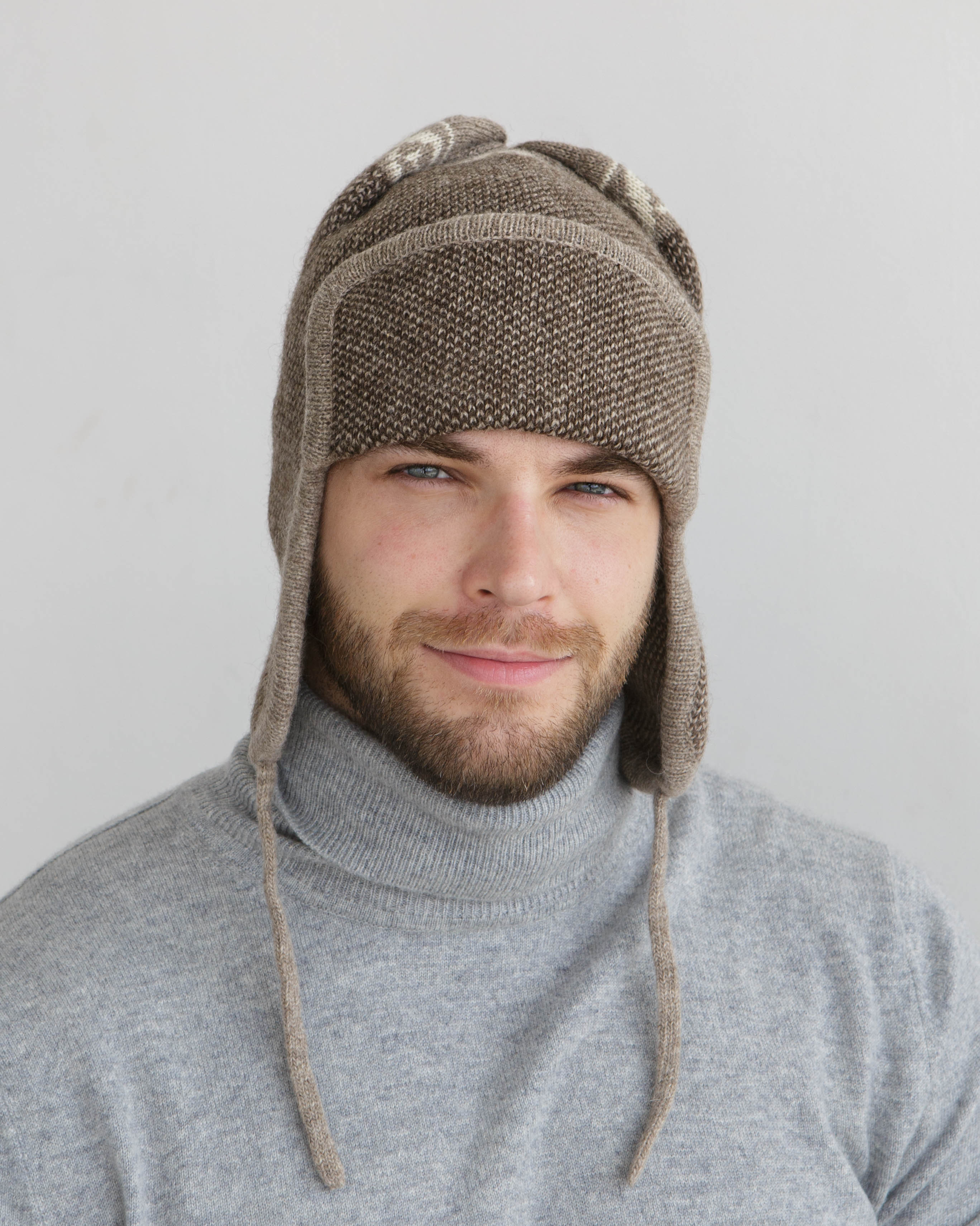 Ушанка из шерсти яка с рисунком 3871 коричневая