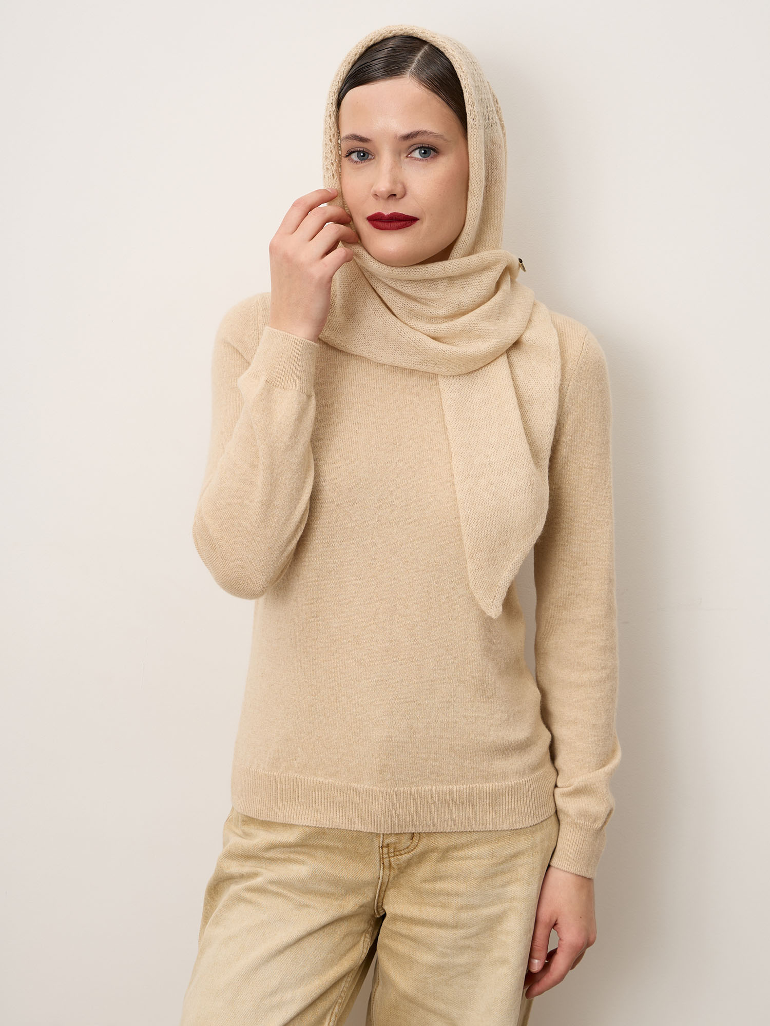 • Пластичность кашемира позволяет косынке легко держать форму и красиво ложиться.