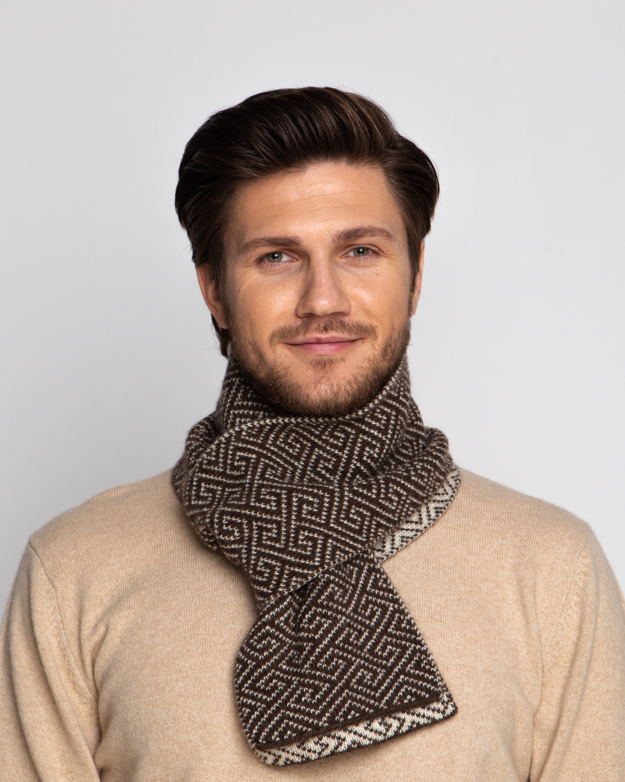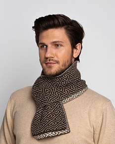 шарф брала для подарка. Шарф коричневый с рисунком, узкий 15 см. Теплый, плотный. Отлично будет смотреться поверх верхней одежды. |