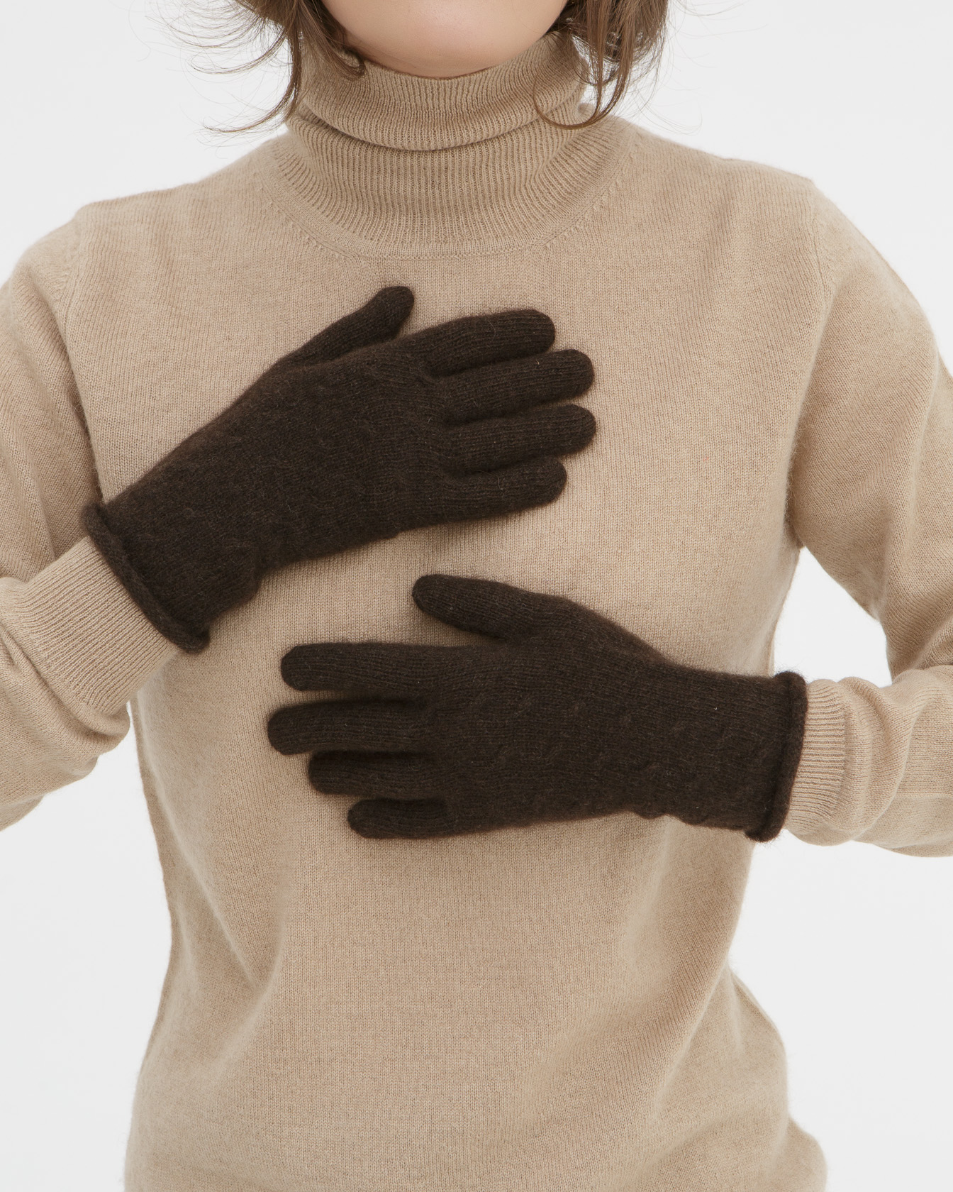 Перчатки из пуха яка UL PR темно-коричневые