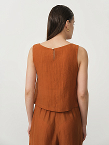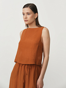 Круглый вырез горловины, аккуратная обработка пройм, лёгкая фактурность ткани, ровные швы, комфортная посадка.