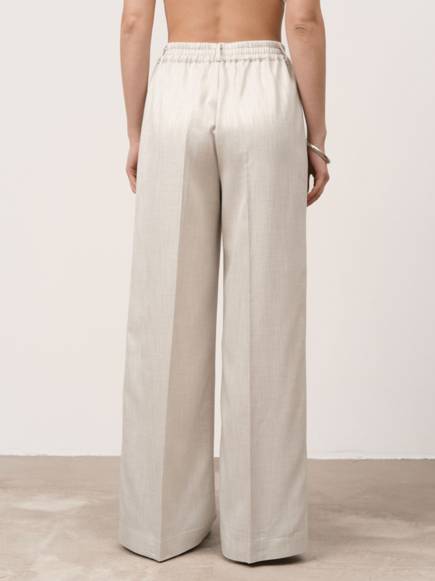 Прямой крой с высокой посадкой, визуально вытягивающий силуэт. Лаконичный дизайн делает модель универсальной для базового гардероба.