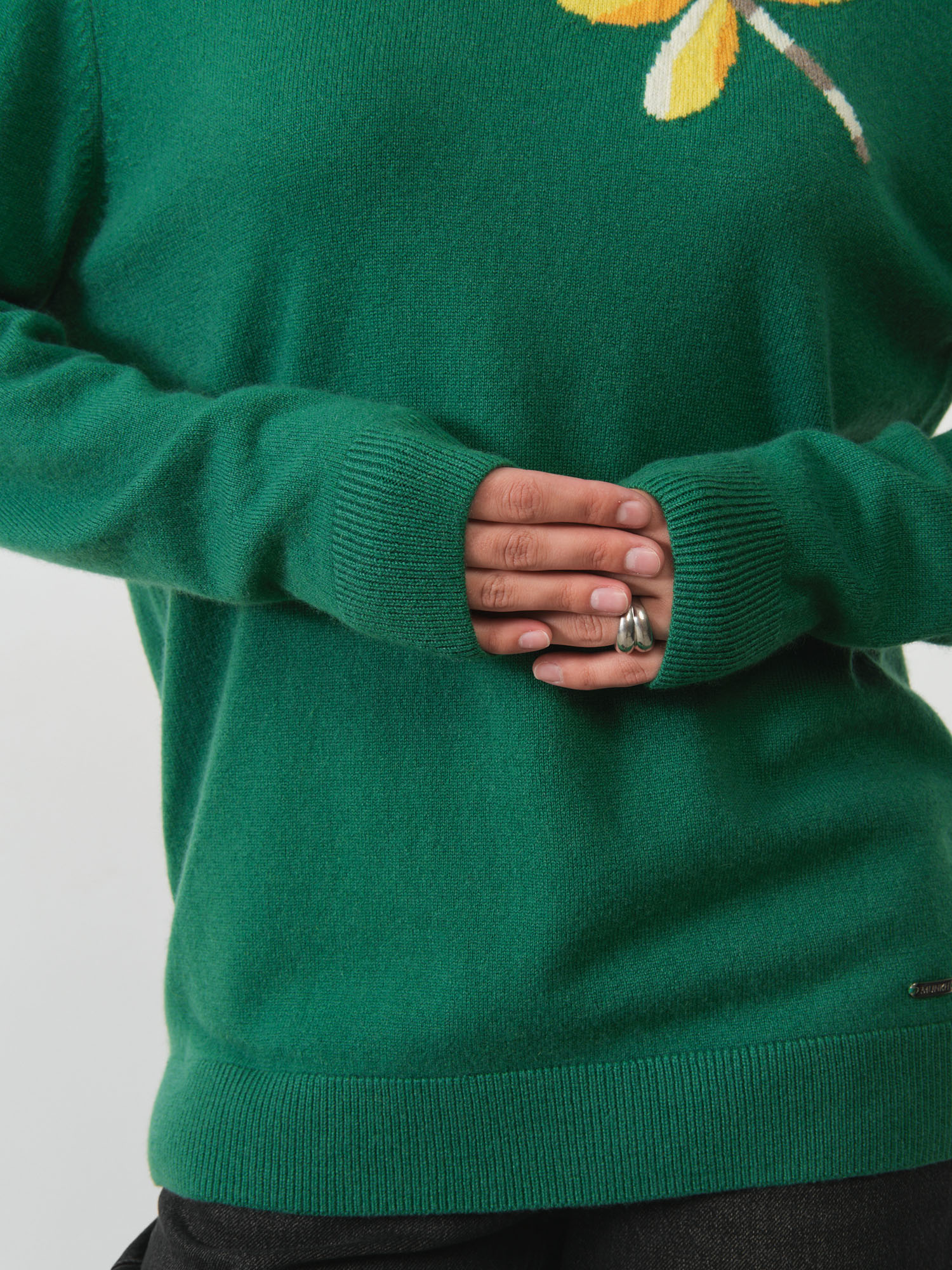 Насыщенный зелёный оттенок, подчёркивающий свежесть и элегантность образа.