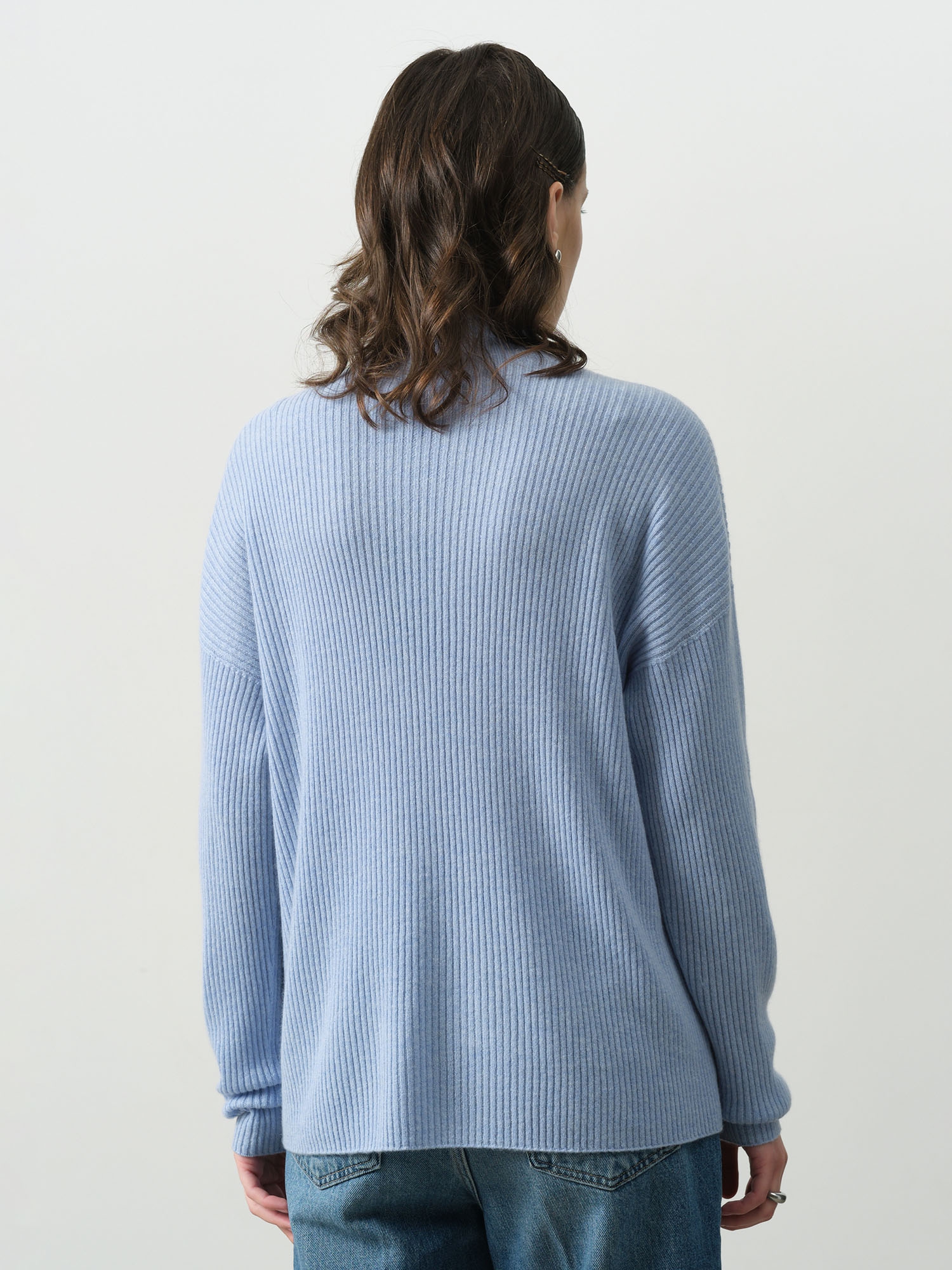 Лаконичный крой с классической линией плеча и круглым вырезом горловины делает джемпер универсальным. Он элегантно подчеркивает силуэт, не стесняя движений. Небесно-голубой оттенок освежает лицо, делает кожу сияющей и гармонирует с множеством цветов – от нейтральных до акцентных.