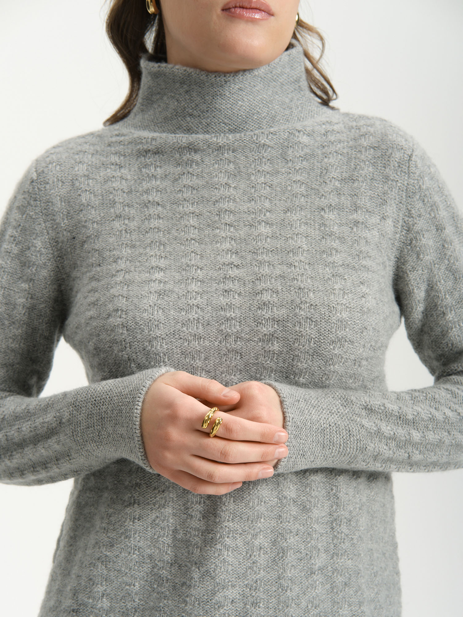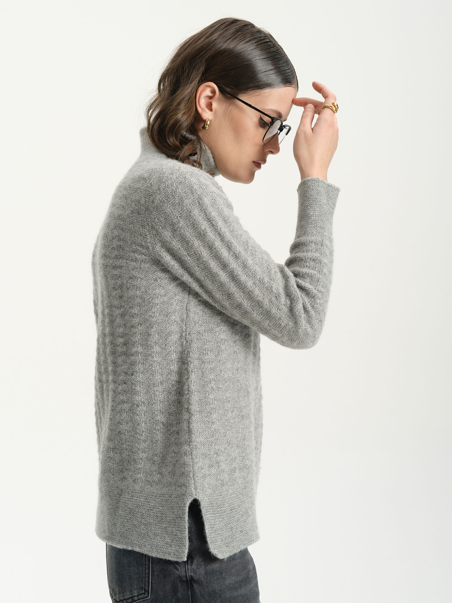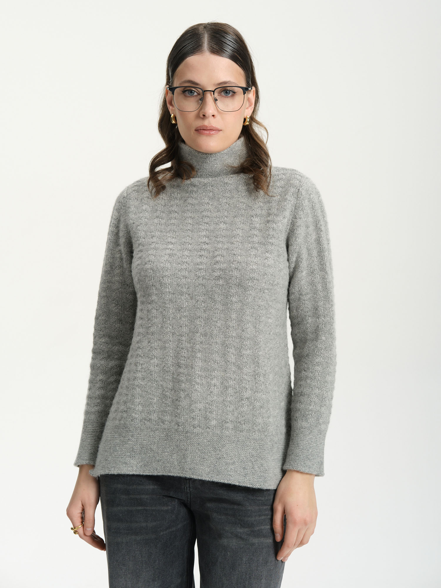 Модель выполнена в классическом дизайне с круглым вырезом и прямым силуэтом, что делает её универсальной и подходящей для любого типа фигуры. Тщательно проработанная вязка с традиционным узором обеспечивает оптимальную плотность и износостойкость изделия. Серый цвет придает джемперу практичность и стилистическую гибкость, легко интегрируясь в различные образы.