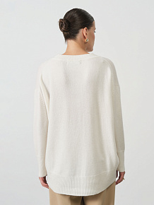 Безупречная гладкая текстура вязки и удлиненная линия спинки формируют утонченный силуэт. Легкая и уютная модель адаптируется к различным жизненным ситуациям: от деловых встреч в сочетании с классическими брюками до романтических прогулок в комбинации с воздушными юбками.