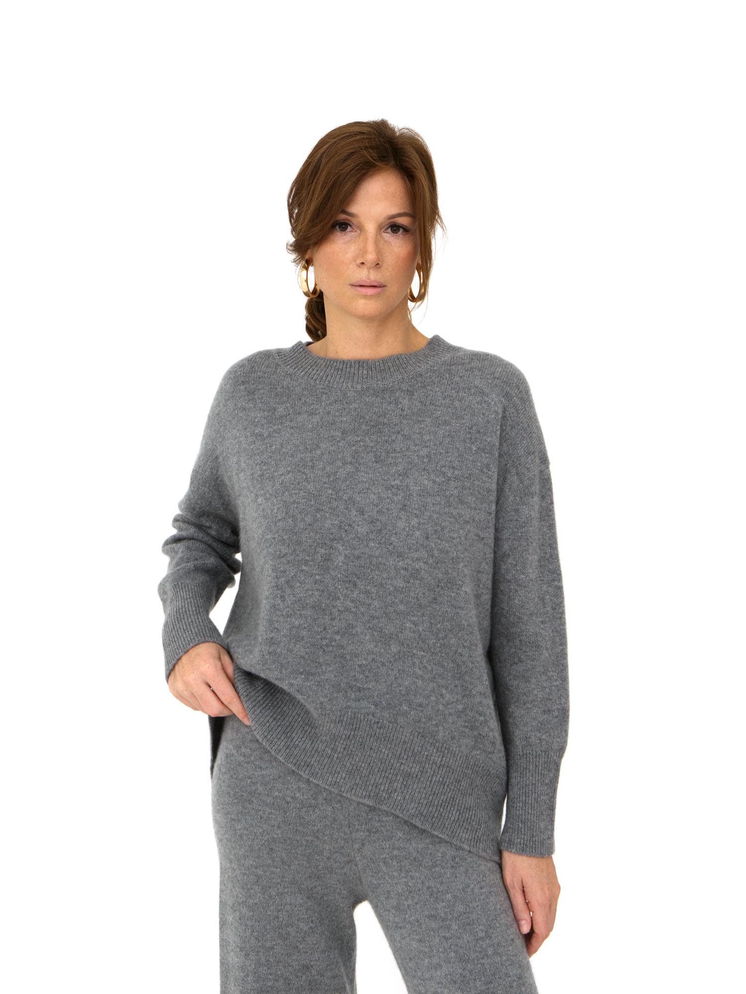 джемпер свободного кроя с круглым вырезом под горло