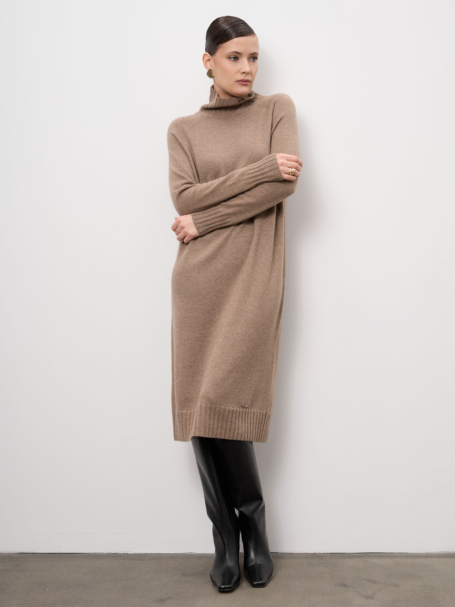 Свободная, но выверенная посадка не сковывает движений и подходит для повседневной носки, офиса или уютных выходов. Платье легко комбинируется с сапогами, ботильонами и аксессуарами.