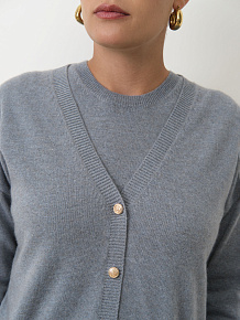 Мягкий, теплый кардиган, по ощущениям чуть покалывает кожу (по сравнению с похожим кардиганом другого производителя). Кардиган тонкий, без топа (его здесь назвали джемпером океан) форму не держит, но с топом смотрится лучше. Идет в размер, соответствует обмерам в описании, цвет также точно как на фото. |