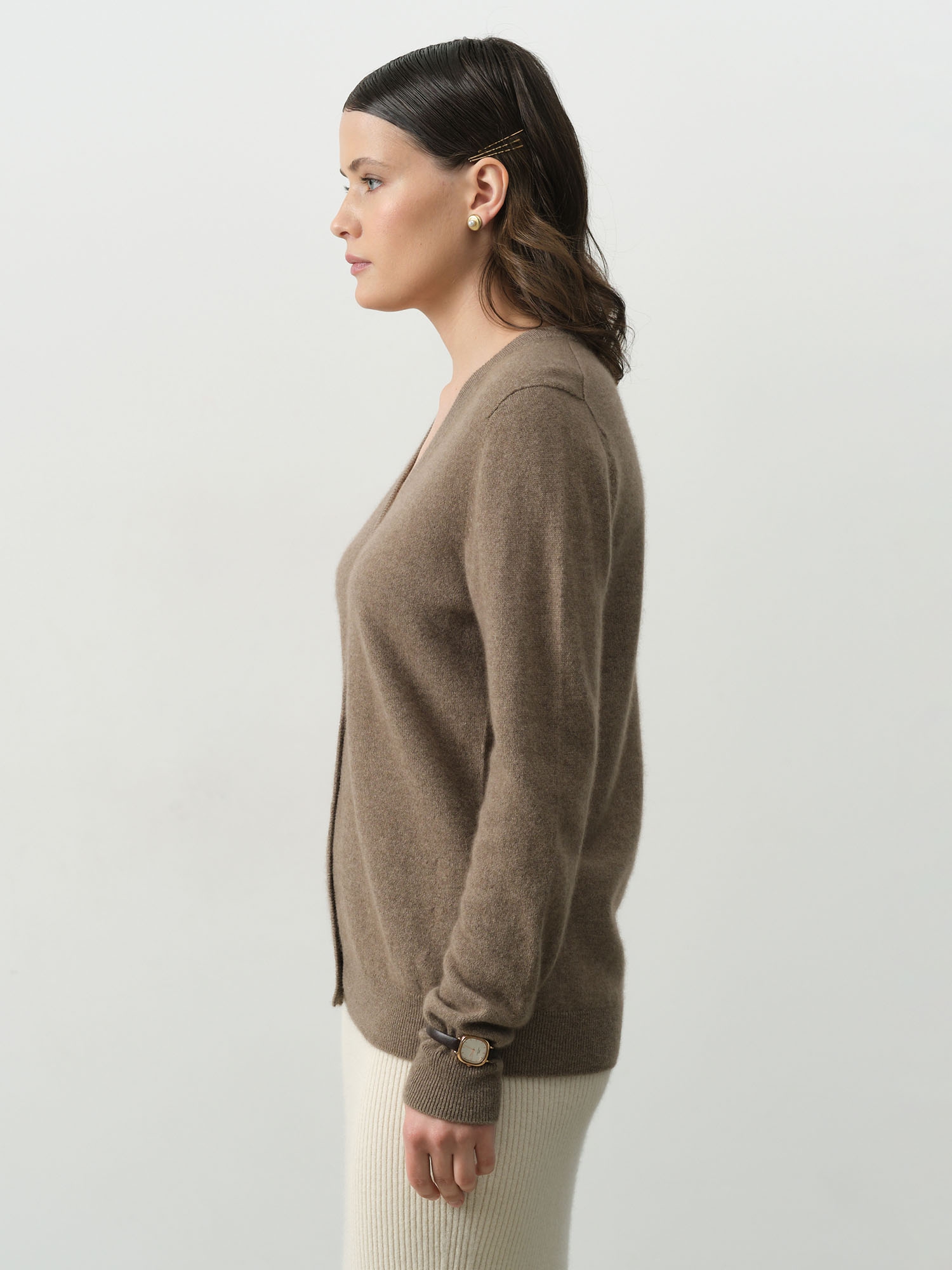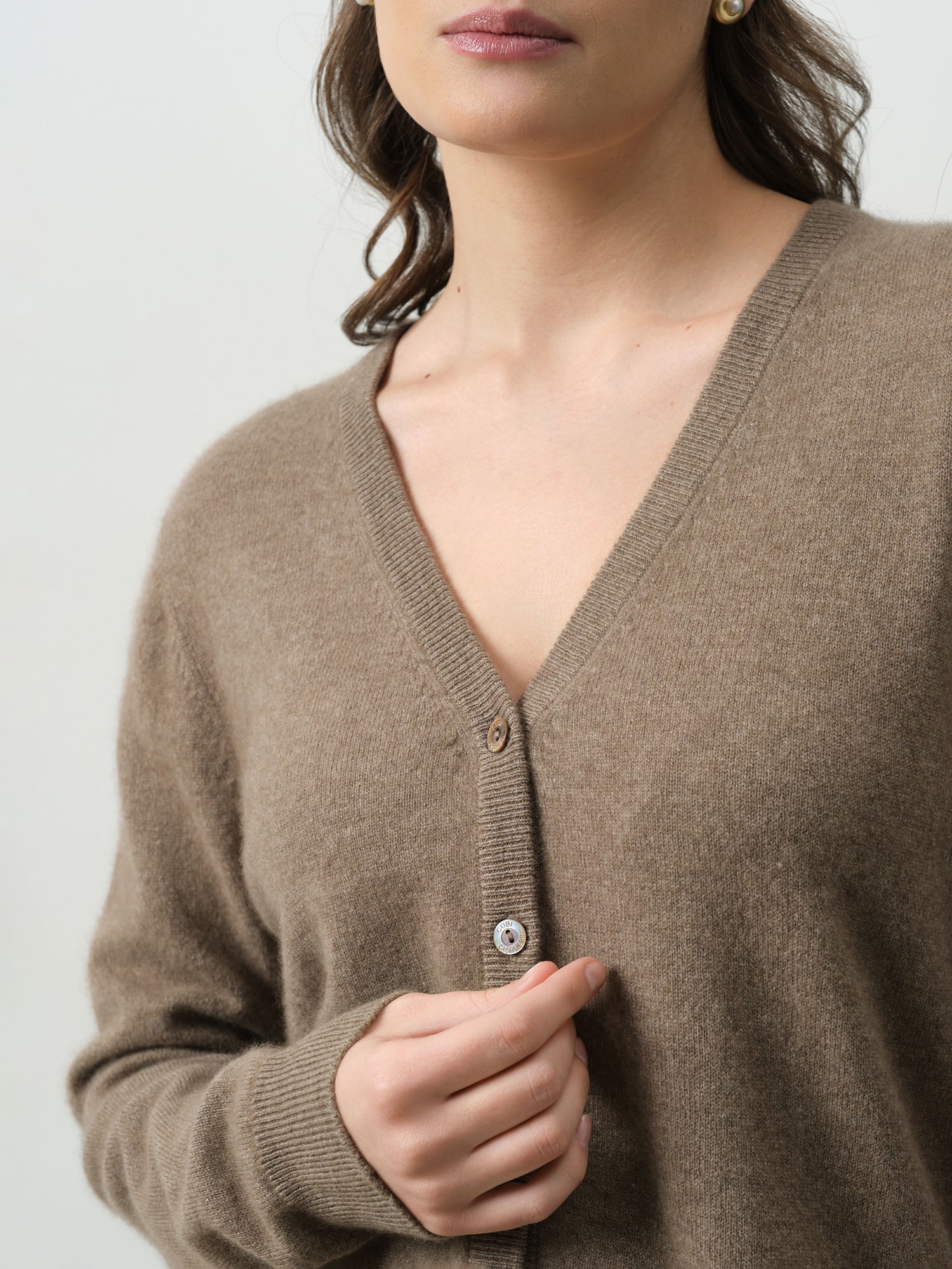 Женский кардиган из кашемира цвета капучино – это не просто элемент гардероба, а настоящий образец стиля и комфорта. Изготовленный из 100% кашемира, он предоставляет ощущения утонченной мягкости и тепла, что особенно важно в прохладные дни. Его уникальные свойства включают отличную воздухопроницаемость и гипоаллергенность, что делает его идеальным выбором для чувствительной кожи. В жару кашемир также способен поддерживать оптимальную температуру, позволяя вашей коже дышать.